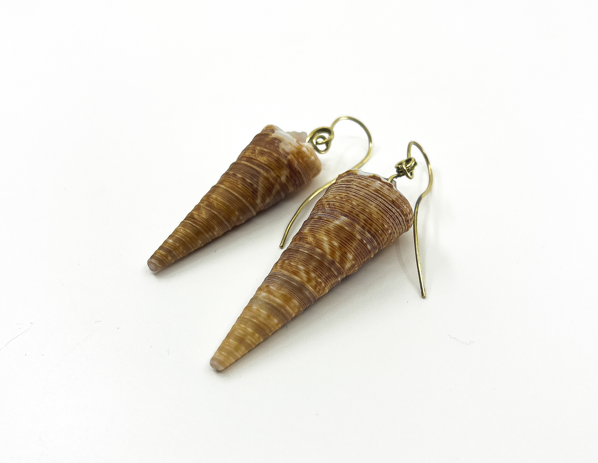 Unique handpicked sea shells, brass earrings