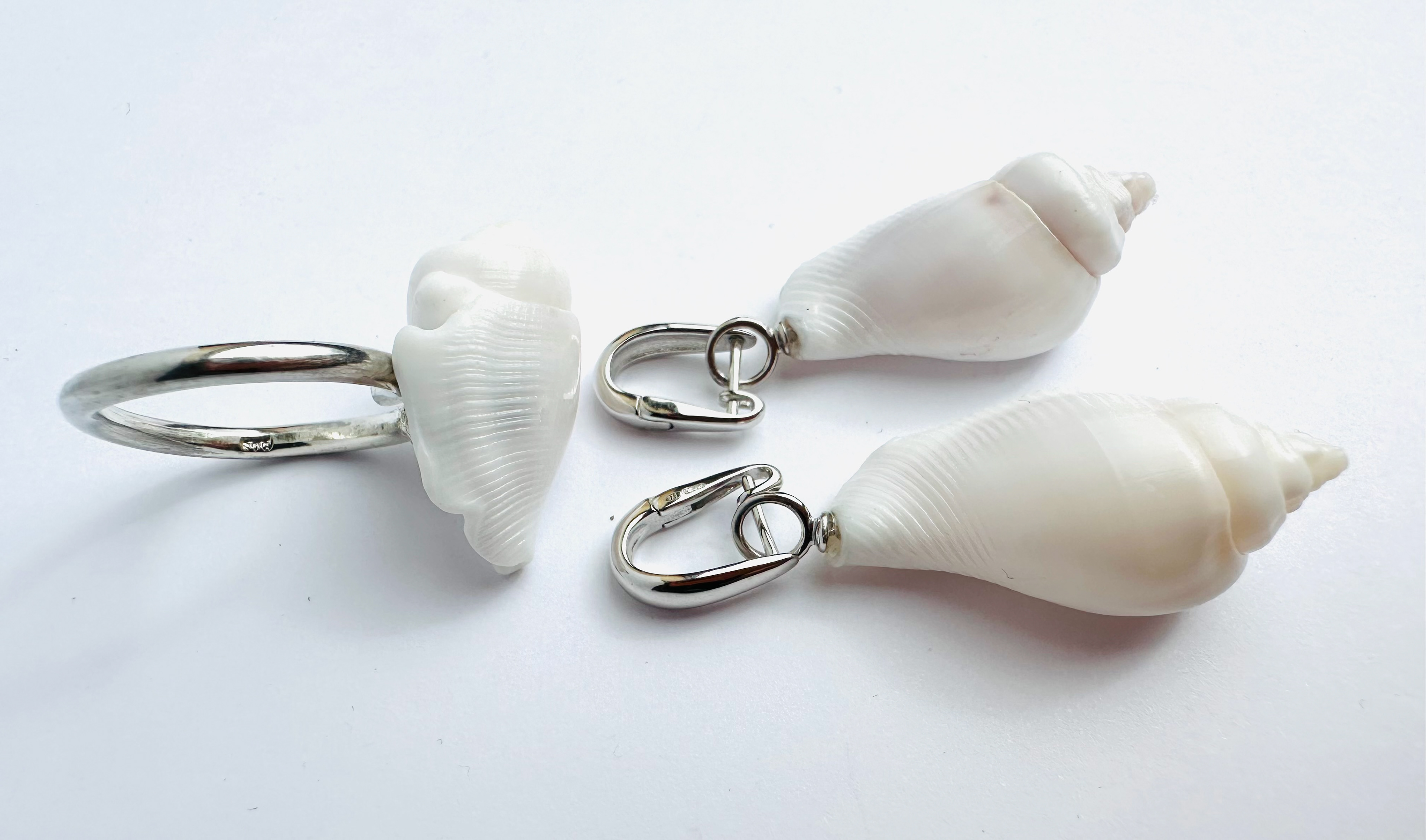 Unique handpicked seashells. Sterling Silver precious metal items.